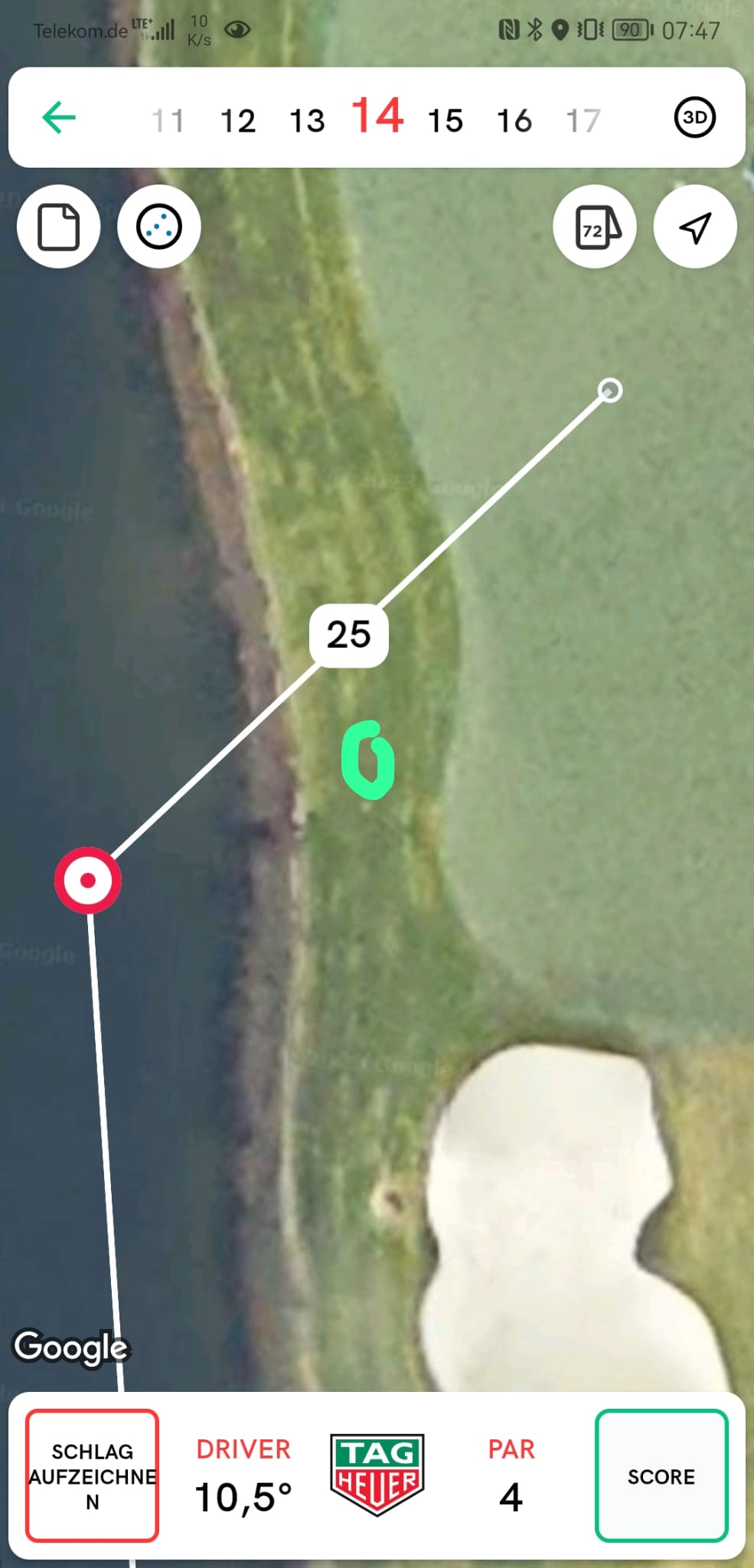 eine Frage, die sich aus der Ferne nur schwer bis gar nicht beantworten lässt. Vielleicht hilft hier der Gedanke, dass "nicht näher zum Loch" eine Kreisbahn ums Loch bedingt. Ausgehend vom Bezugspunkt und mit zwei Schlägerlängen kann das manchmal etwas seltsam aussehen.