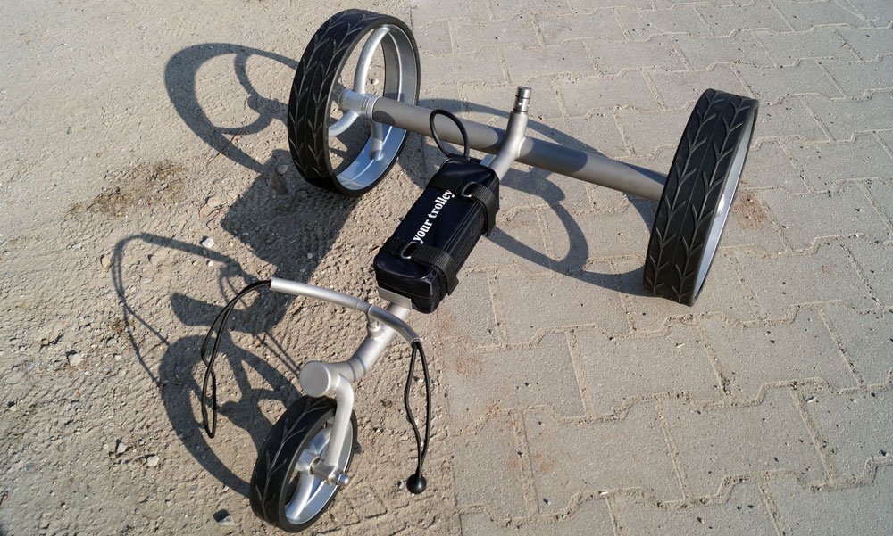 Der Model One Trolley von YourTrolley lässt sich einfach montieren, ist gut verarbeitet und das Design ist schlicht und ansprechend. Wem das Schieben des Trolleys aus diversen Gründen (Alter, Golfplatz in den Bergen, etc.) zu anstrengend ist, bekommt für unter 1000 Euro nicht nur einen funktionalen, sondern auch eleganten Elektro-Trolley für sein Geld.